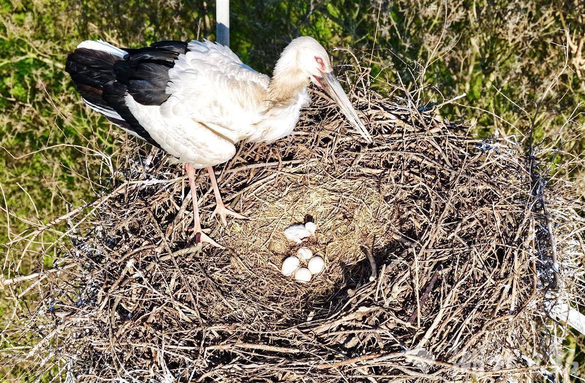 东方白鹳妈妈悉心呵护宝宝。